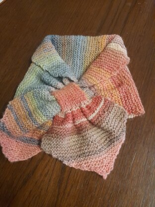A classic 'Miss Marple Scarf', named after Agatha Christie's famous detective. A 1940s-style scarf with a keyhole loop so that one end can be threaded through the other. The scarf is neat and fitted, an ideal extra layer to keep out the cold. There is a photo-illustrated guide to making the keyhole loop. The sample in the second picture in grey is knit in Sirdar's Cashmere merino silk DK and this is an excellent alternative to their Sirdar No. 1 yarn.