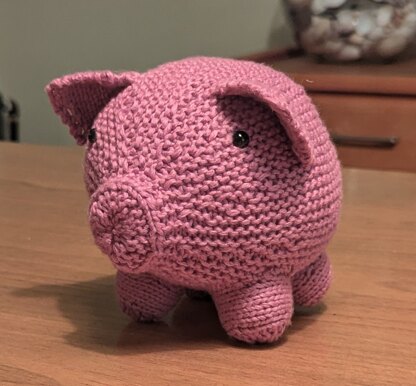 For an ADVENTUROUS BEGINNER knitter because the Pig is knitted entirely flat on straight needles with only a few increases and the short row shaping is fully explained in the pattern. There are some sewn seams and the Pig is knitted in pieces and then sewn together.