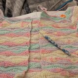 Crafting is a great stress reliever for me. In 2009 one of my sons passed away, I knitted through the fog. In 2018 my husband had a stroke, I knitted away the hours by his bedside as he recovered. Now I’m fighting secondary breast cancer. I’ve knitted through the chemotherapy treatment, through the various appointment wait times. I love to see my ideas on paper appear on the needles.