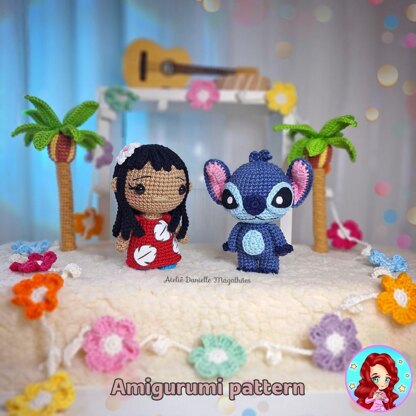 This is a digital crochet pattern (PDF) to create two adorable dolls inspired by Lilo & Stitch!