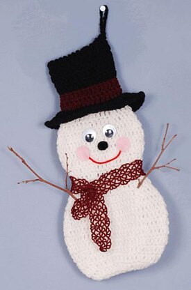 Designed to hang by the fire with care, our crochet snowman-shaped "stocking" is like no other stocking you've seen before and with cute twig arms and lacy crochet thread scarf, he's soon to become a favorite. Brrrr it's cold outside but our festive snowman will bring warmth to your heart and throughout the holiday season.