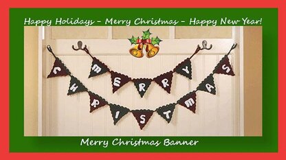 Work up our fun and cute Christmas banner that says; "Merry Christmas." Crocheted letters are placed on a triangular flags to create a banner for your holiday fun! Add jingle bells to the tips of each flag and/or big Christmas bows on each end of both banners for a festive touch!