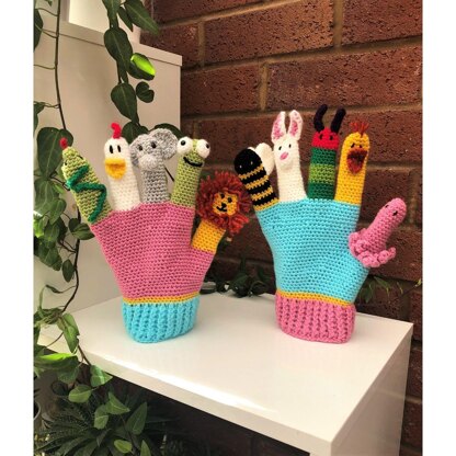 This crochet pattern will instruct you on how to make 10 different animal finger puppets and for those who choose to, you can then turn the finger puppets into a hand puppet glove!