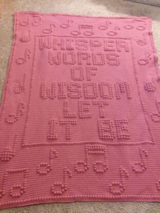 Blanket was made with Caron One Pound (4200 yards) & a F hook. Yarn choice, hook size and tension may alter finished size. (54 x72)
