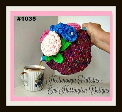 CROCHET PATTERN, crochet tea cozy, and crochet flowers and leaves. Make to fit any size pot, instructions given for custom size.
