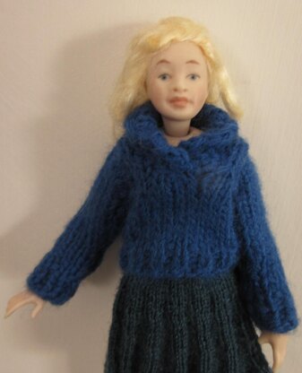 A chunky style jumper knitted with thicker yarn and needles than is normal for this size of doll. Note: Cuffs may be worn down or turned up.