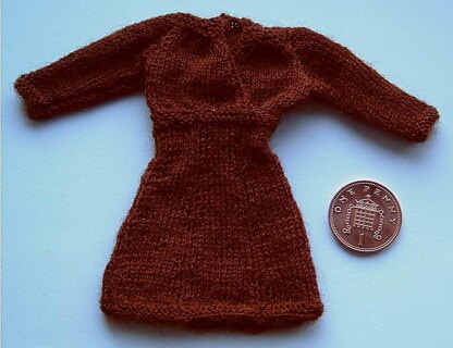 This is designed for a fuller figured, more matronly lady doll approx 5½-inches/14 cm tall. The bust area may require a little extra padding on some dolls. This may have been worn with a lace scarf in the neckline and could be worn with or without a belt.