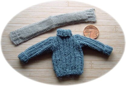 Approximate finished sizes: Polo neck sweater 2½-inches/6 cm tall, 1½-inches/4 cm across chest. Scarf/Muffler ¾-inches/2 cm wide, 5-inches/12 cm long.