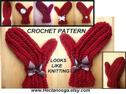 FOR MORE MITTEN PATTERNS SEE THESE LISTINGS: http://www.etsy.com/listing/62311506/231-mittens-crochet-pattern-raspberry http://www.etsy.com/listing/58751150/crochet-mittens-pattern-no-89-wow-great http://www.etsy.com/listing/65773607/335-frilly-edge-girly-mittens-make-them
