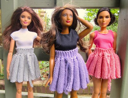 Note: To protect your dolls modesty, the pattern includes instructions for panties to go under the mini skirt. This may be worn with or without the belt.