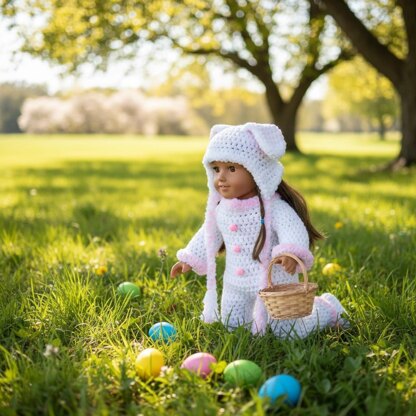 Crochet Doll Clothing patterns are probably some of my favorite things to make. This crochet 18” Doll bunny pattern is super fast and easy to do. Is this not one of the cutest bunny rabbits you have ever seen . Made with worsted weight yarn, these doll projects are perfect for left over yarn. They take very little yarn and time. Perfect gifts. The instructions are for the hat, jumper, and the booties. This crochet pattern is great for any level of crocheter. Very simple and basic stitches. The 18” doll costume is a perfect birthday gift, Christmas, or any time of the year for that special little girl, or let’s be honest, any doll lover of any age. This outfit does fit the American Doll and any other 18” dolls.