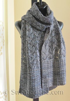 Each end of the scarf is a chunky section of a textured rib stitch that is just a mix of knits and purls, but is visually much more than a simple rib. The middle is a pretty trellis lace that is actually quite repetitive. After knitting a few reps, you'll start to get a feel for it and soon be able to "read" your knitting in order to maintain the stitch pattern (with only an occasional peek at the instructions).