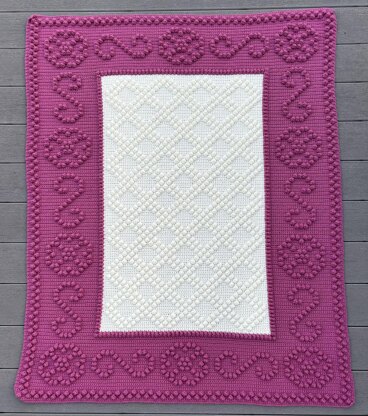 Yarn: Mary Maxim Value - Dark Pink (2100 yards) Pound of Love - Antique White (1200 yards)