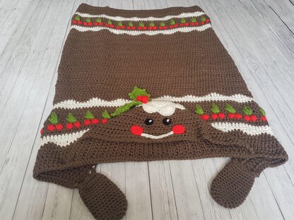 2in1 Hooded Christmas Blanket Christmas Pudding Afghan