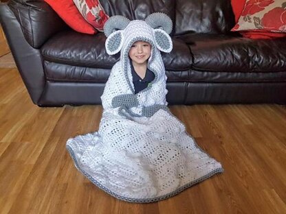 It is designed to be a full body blanket. The pattern includes child and adult size hood and mittens.