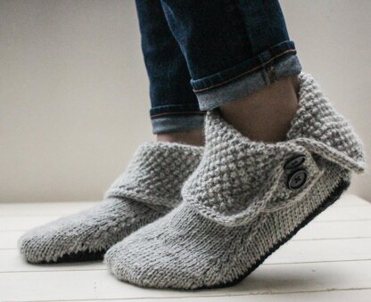 These slippers boast a convertible cuff, comfy double-knit sole, and seamless construction with short row shaping (using the German Short Rows method - full instructions included in pattern). First work the toe, then the sole, shoe back, short row shaped upper, and finally the moss stitch cuff!