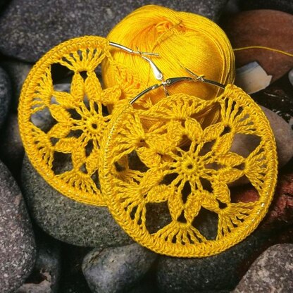 PLEASE NOTE NEEDED SUPPLIES: * Steal hook size 1.5 mm * Cotton yarn ( i used Yarn Art violet cotton yarn 50g (~282m) (1,76 oz/308 yards) *A pair of metal round hoop earrings, diameter – 2.9 inch.