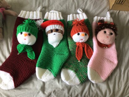 The stockings and faces are knitted flat. The faces are assembled and then stitched to the stocking before it has been sewn up. I promise they are very easy with the minimum amount of assembly. I have included a step-by-step guide to help you, should you need it. Because the guide is full of photos it is a good idea to only print off the pattern direction and save the guide to view on screen should you need any guidance, you will save a lot of ink that way.