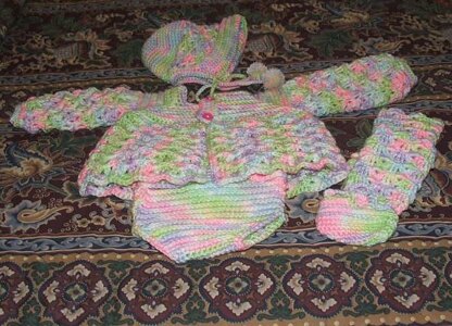 Supplies: Boye Size F and G Aluminum Crochet Hook, 12 ounces Red Heart Soft Baby (#7989-Rocking Horse), 10-5/8" buttons, needle and thread, yarn needle.