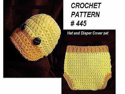 Make this set as a duckie design, or make it as a simple hat and diaper cover set. Also dress it up with a flower for a girly style!! (Or make it in any other color! It doesn't have to be a duck, it's a simple newsboy pattern.)