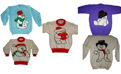 5 x Plus Size Snowman Jumper / Sweater Knitting Pattern