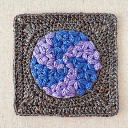 This motif is a part of the Jasmine Stitch Granny Square series. Each side of the square motif match to triangle motif and other square motifs.