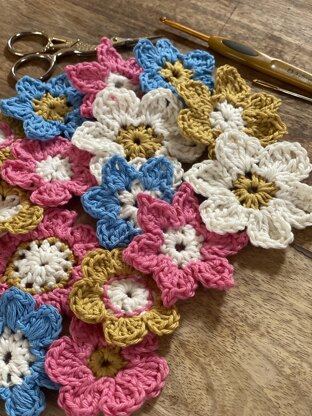 The pattern includes 7 designs, each with a slight variation, showing you how versatile crochet flower making can be.