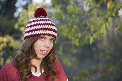 Pattern includes the basic hat, one stripe hat, two stripe hat, three stripe hat, football hat, bear hat and striped hat.