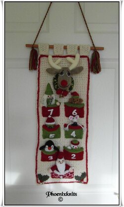 The pattern includes instructions for the backing, tabs, pockets and all the toys - including Rudolf and his wreath. There is also a template for the numbers.