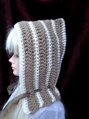 CROCHET PATTERN - Tan Striped Hood, Age 5 to Adult, #821