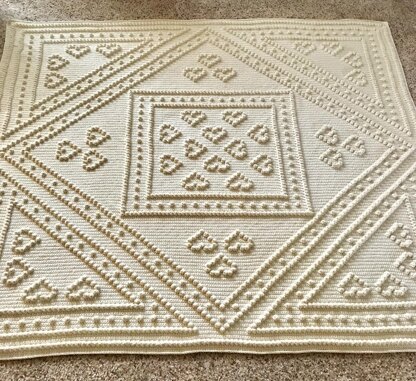 One of my most favorite designs to date. This one was made w/ Caron One Pound & G hook. Yarn choice, hook size and tension may alter finished size. Would also be perfect with a sport weight yarn for a baby blanket ( size would be much smaller).