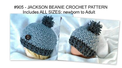 905 - CROCHET BEANIE PATTERN, Unisex Style, Flower Pattern included, Pom Pom instructions included, all sizes from 2 years to adult.