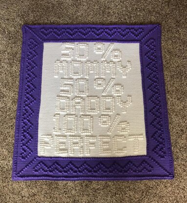 Blanket reads: 50% MOMMY 50% DADDY 100% PERFECT