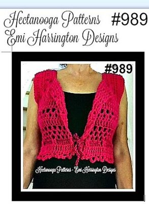 Women's Shrug Vest, Crochet Pattern, #989. make sizes small, medium, large, Xlarge, relaxed fit