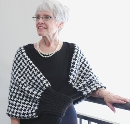This Wrap appeals to both sides of me--the traditional/classic side and the quirky/different/unique side. I have taken a traditional, well loved pattern stitch (houndstooth) and given it a unique twist with the construction of this Wrap.