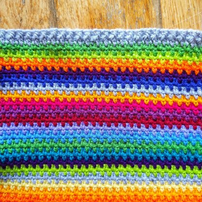 This blanket requires no counting which makes it a perfect, relaxing and meditative project. Very simple moss stitch is just chain 1 and single crochet alternating all the way down.