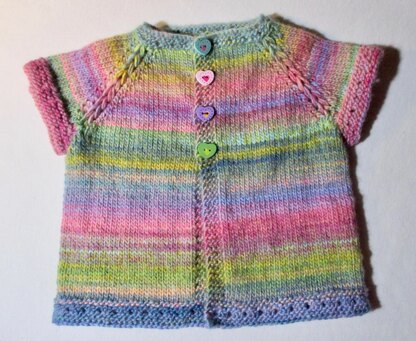 A little stocking stitch cardigan in 8 ply / DK yarn, with an unusual effect to the raglan shaping.