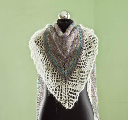 It is perfect shawl for a beginner, the body is made using only knit stitches and yarn overs. To knit the lace border you need to know how to make purl stitches and ssk.