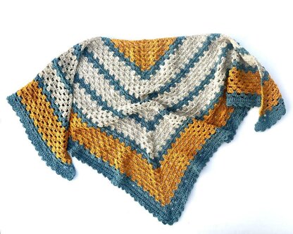 This crochet triangle shawl pattern is perfect for a new crocheter who would like to transition on to a bigger project. This shawl pattern creates a beautiful shawl, not too hard, but fun and easy without being boring! A Sunny Day Shawl is a sweet and fun granny square style triangle shawl that can be worn as a scarf as well.