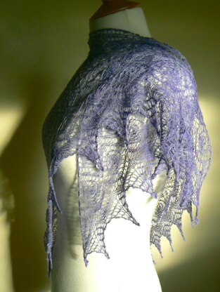 Suitable for knitters with a little experience of lace, or a confident/adventurous beginner, this shawl was originally designed for a single skein of my Mohair Silk Lace yarn. I have since added a Fine Lace version for those who prefer a lighter weight yarn.