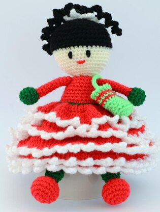 Abby Christmas is approx 26 cm (10 inches) tall. Uses 3.50 hook.