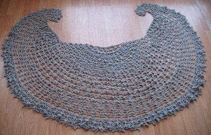 It is a top-down, crescent/semi-circle shawl with an abundance of small flowers. The chart is only up to row 15 to give a general idea where the stitches are. Any yarn and colours will be great for it. Gauge is not important.