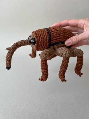 Materials:Yarn - I used YarnArt Jeans (50g - 160m): about one skein of lighter brown (#40) - for head, legs and body. Less than a skein of darker brown - for back and legs. Some of the darkest brown and black for nose.Hook 1.75 mmPinsHollowfibre stuffingStitch markerSafety eyes 16 mm or 18 mm diameter (one pair)Tapestry needle