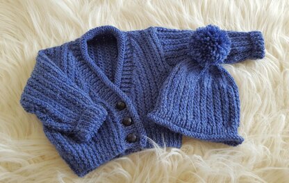 You will receive instructions to knit the Ribbed Cardigan and matching Hat
