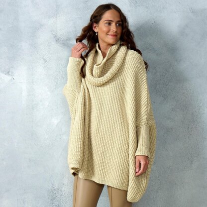 Adeline is an oversized poncho sweater with matching cowl. The poncho sweater is knit from the bottom up. The cowl is knitted in the round.