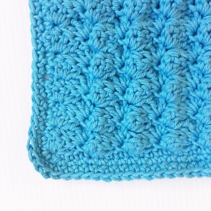 An easy addition to a baby blanket is to also give a facecloth. I designed this one to match the style of my Adore Me Baby Blanket and to also provide a small project for a crochet workshop. I have used different yarn for this. It requires the same hook size, but is made from a cotton that is less expensive and designed to be used in facecloths and dishcloths. Instructions are also included for you to be able to adjust the size if using a different size yarn or if you want to make something else instead.