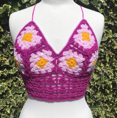The back is laced up corset-style, so you can adjust for fit. Each square is joined as you go, so there's no sewing up afterwards. Great for using up small scraps!