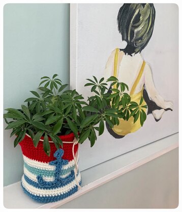 Ahoy! Want to add some summertime sunshine to your decor while also getting organized? What about giving your favorite plant a cute cozy? Then this stylish, nautical container is for you! Your family and visitors will love seeing this homey touch of the sea in your house. Perfect for a house by the ocean or a lake house. It will hold all the things! Feel free to mix up the colors and stripe placements. Please tag #hiyocrochet in your social media posts so I can see your creations!