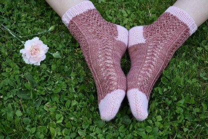 ‘Aibu’ means ‘caress’ in japanese, a caress such as this hand dyed yarn by Eline et Laine, which is so light and so sweet. A lace pattern such as a caress on your feet during warm days. And as the Cherry tree flowers, this pair of sock gives you peace and joy every time you wear it!