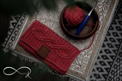 Modern with a twist the Aisling Infinity Crochet Clutch is a popping accessory. It can be dressed up fancy or for a casual coffee date. I found I love using mine to hold my crochet hooks, it feels luxurious and my hooks deserve that lol. Dress this up with your own flare by adding tassels or a leather tab. If you have a machine such as a Cricut, I’ve included a link to download a pdf cutout to make it quick and easy to get a fun shape. This tab can be cut out in a variety of fabrics or even leather. It also includes holes for the Dritz-Sew-On Magnetic Snap found at Joann’s Craft Stores. There is a video aid included in this pattern for a visual on the cable rows.